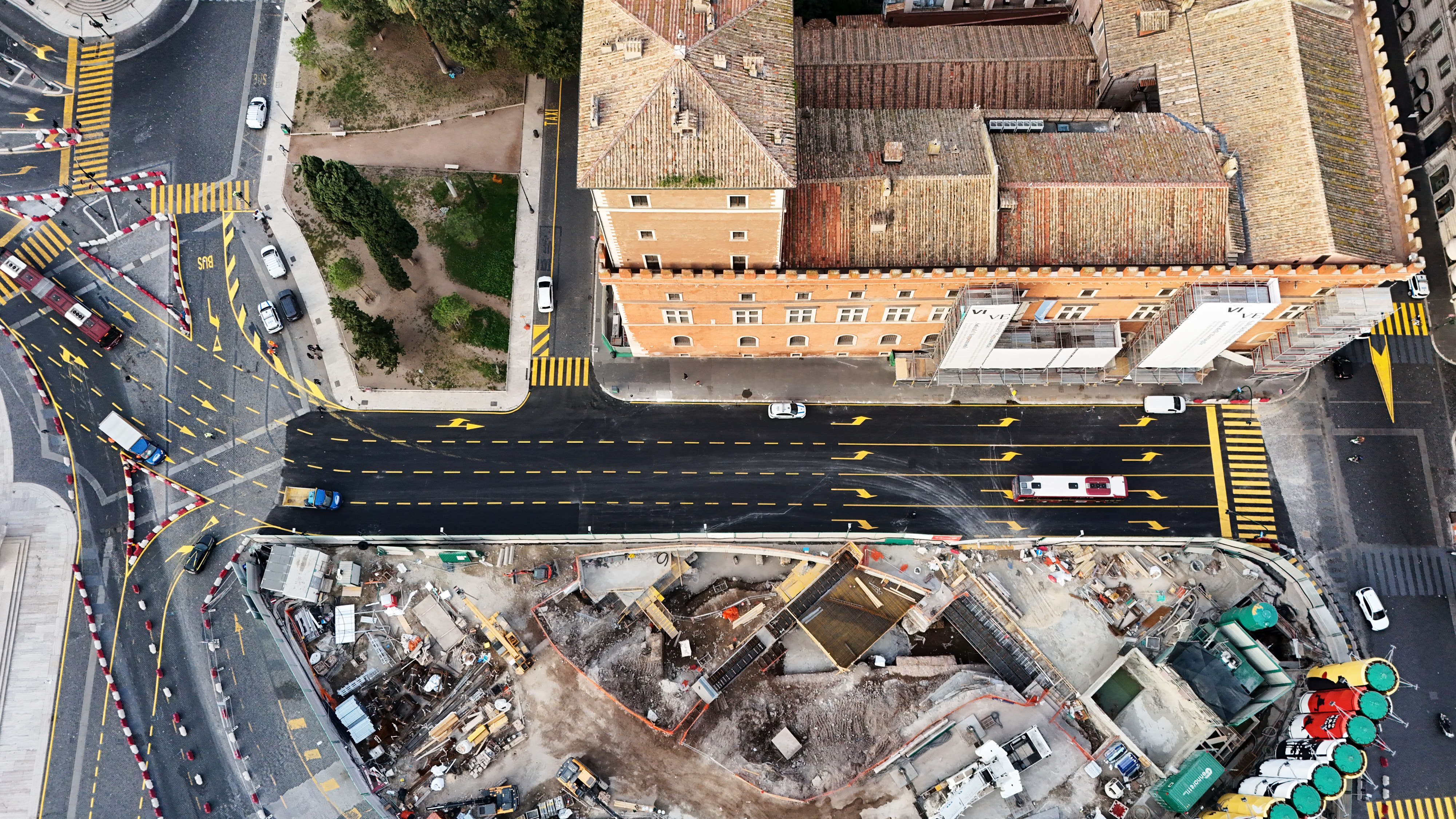 • Dal 16 novembre si avvia una nuova macrofase per il cantiere della stazione Venezia, con lo spostamento di quest’ultimo ed un nuovo assetto per la viabilità capitolina