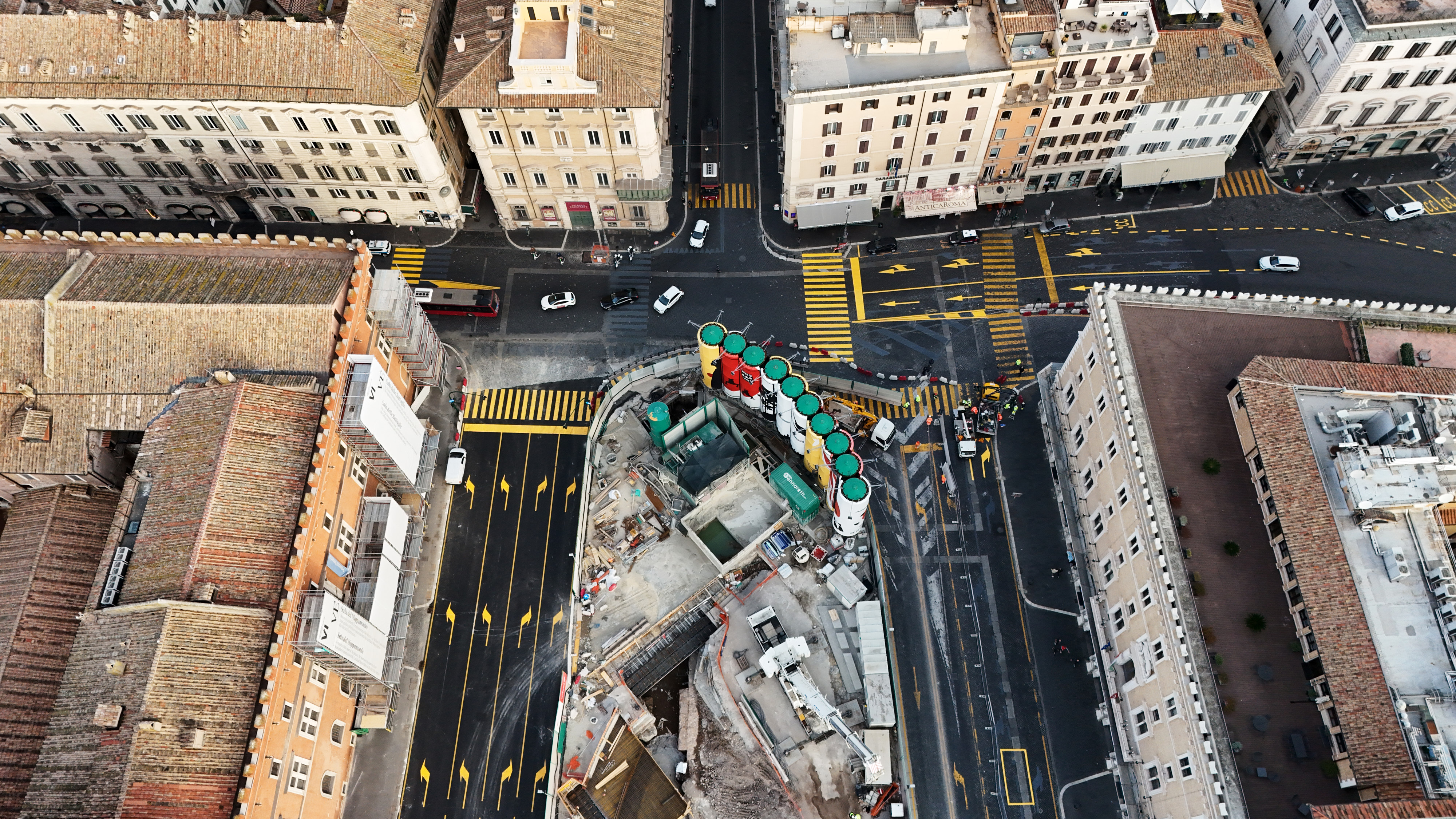 Completate le attività della prima macrofase, avviata nel giugno 2023, che sono consistite nella realizzazione dei diaframmi, dello scavo archeologico e del solaio di copertura, si avvia ora la fase di completamento della scatola di stazione e delle opere connesse. L’intervento, uno dei progetti più complessi e strategici realizzati nel cuore storico della città, è affidato, su incarico di Roma Metropolitane per conto di Roma Capitale, alla società consortile Metro C, guidata da Webuild e Vianini Lavori.